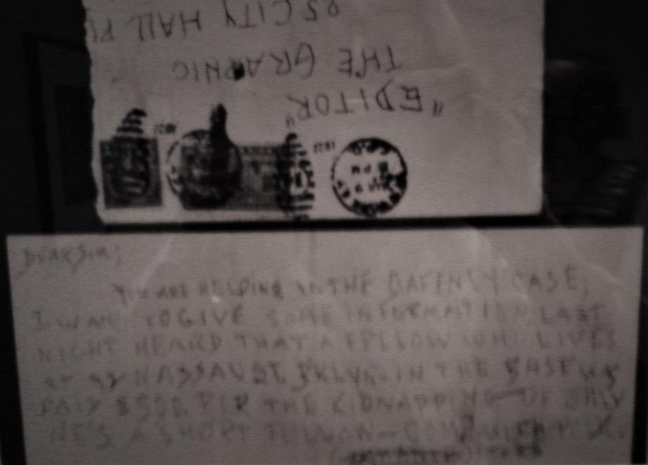 One of the many crank letters sent to NYC papers after Billy's disappearance (included in the Crime Photo Exhibit at the Metropolitan Museum of Art).